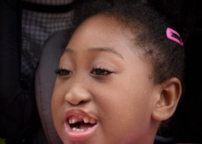 Mia was diagnosed with a midline cleft lip and palate in utero. Sheonly is non-verbal and non-mobile. She uses a PODD book for communication and has the aid of a wheelchair. Mia has an extremely rare condition which affect a few hundred people in the world. It is not known what she will be capable of n her life. she uses a wheelchair to move around and is unable to stand or sit unsupported. Mia is none verbal and uses a PODD book to communicate. She is currently trialing a hitter communication device as an alternative.